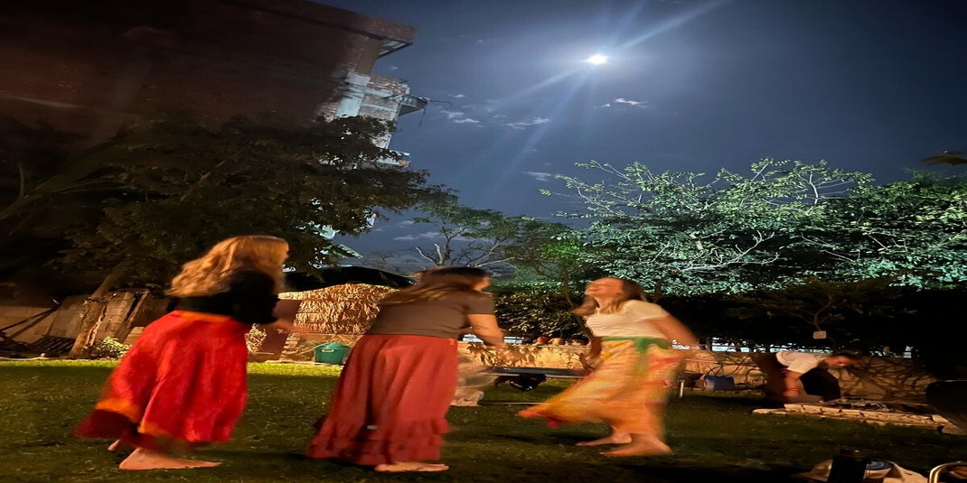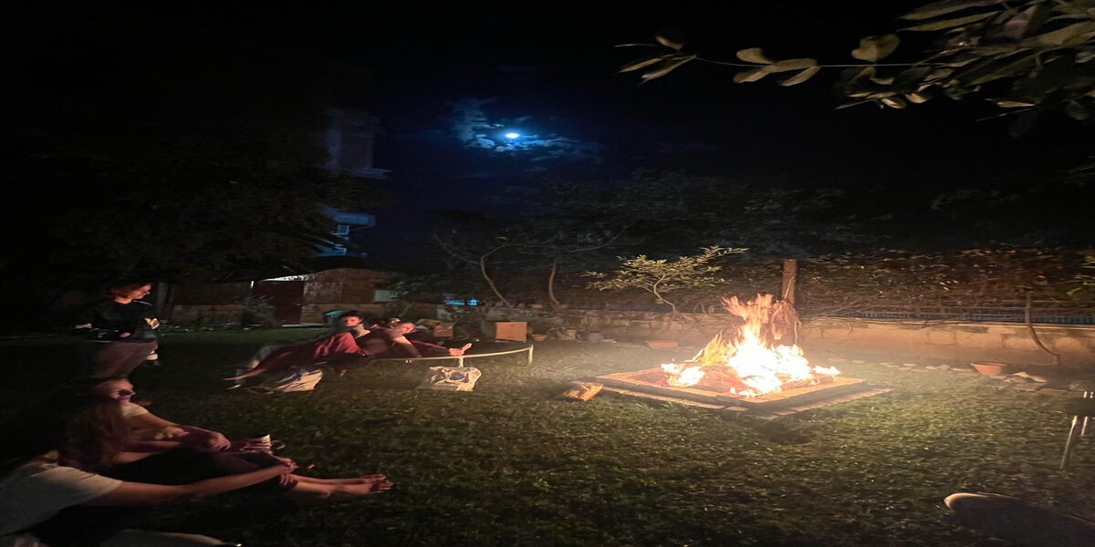 Nach diesem konzentrierten Tag wurde der Abend besonders magisch. Unter dem strahlenden fast Vollmond versammelten wir uns um das Lagerfeuer, sangen Mantras und ließen die Energie fließen. Unsere Gruppe fühlt sich von Tag zu Tag vertrauter und verbundener an.