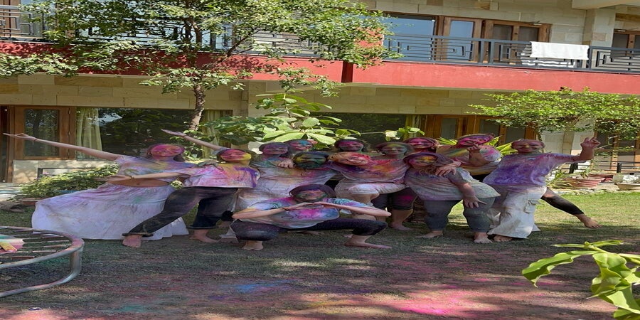 Schon am Morgen versammelten wir uns im Garten des Ashrams, voller Vorfreude auf das Fest der Farben. Bald flogen die ersten bunten Pulver durch die Luft, und innerhalb kürzester Zeit waren wir alle kunterbunt – lachend, tanzend und vollkommen im Moment. Die Musik, die Lebensfreude, das Gefühl der Verbundenheit – es war einfach unvergesslich.